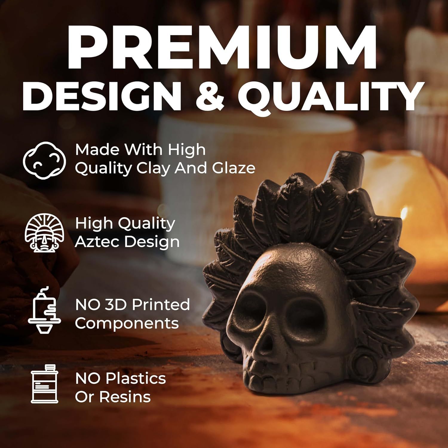 Each whistle is hand-fired by a master potter and engraved with Aztec totems and human faces, embodying both artistic and cultural influences.